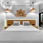 Fantastisk beliggenhed, meget rent sted, meget flot personale. Meget hyggeligt, godt værelse med køleskab. Udsmykningen er interessant...